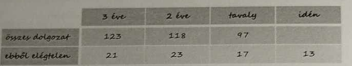 a) Számítsa ki az elégtelen dolgozatok korábbi években mutatott relatív gyakoriságát két tizedesjegyre kerekítve!