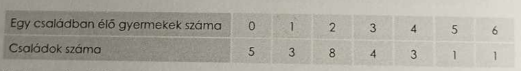 31. Az alábbi táblázatot egy demográfiai kutatás során készítették az egy családban élő gyermekek számáról.